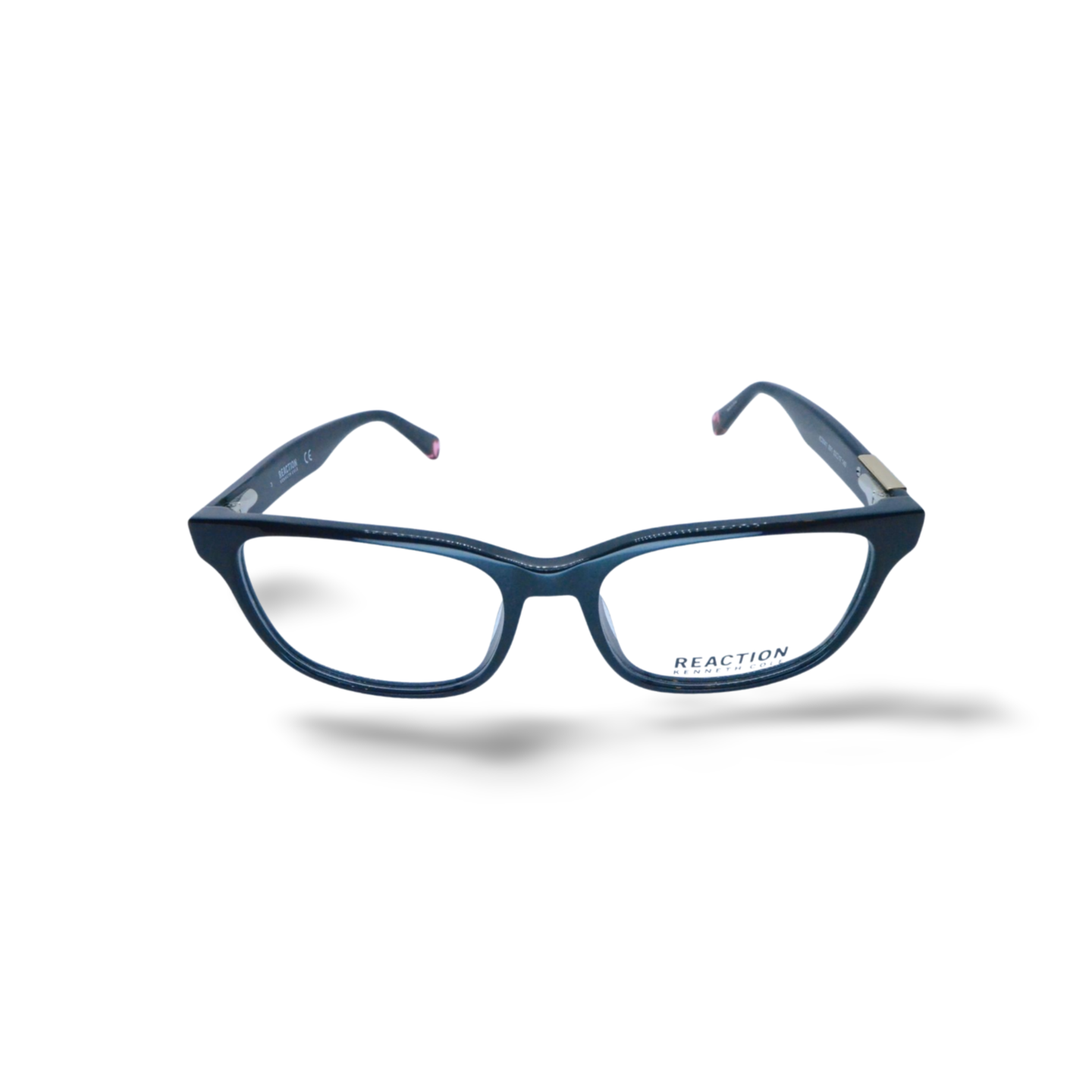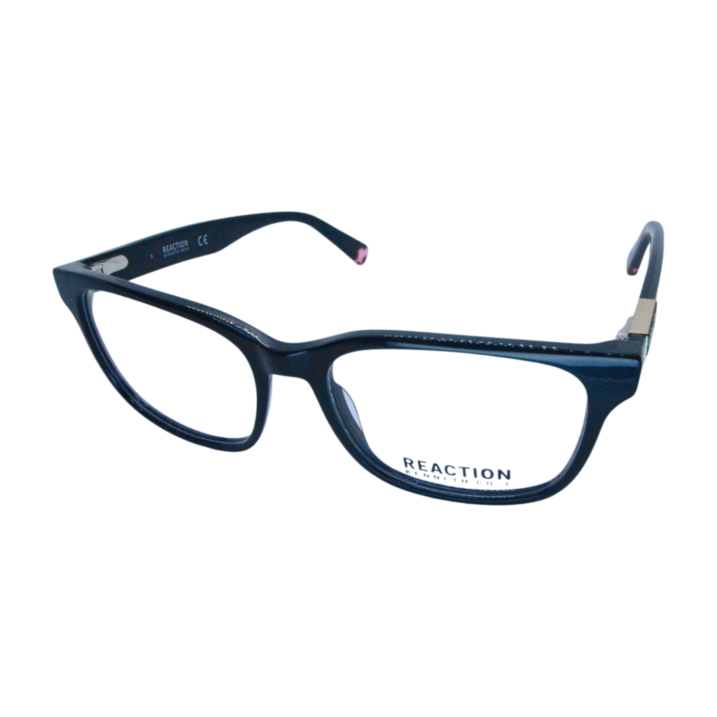 This Kenneth Cole Reaction eyewear features a bold black rectangular frame accented with subtle metallic details for a modern touch. The design blends sophistication and everyday wearability, making it a versatile choice for both professional and casual looks. Stylish and comfortable, it adds a polished finish to any outfit.
