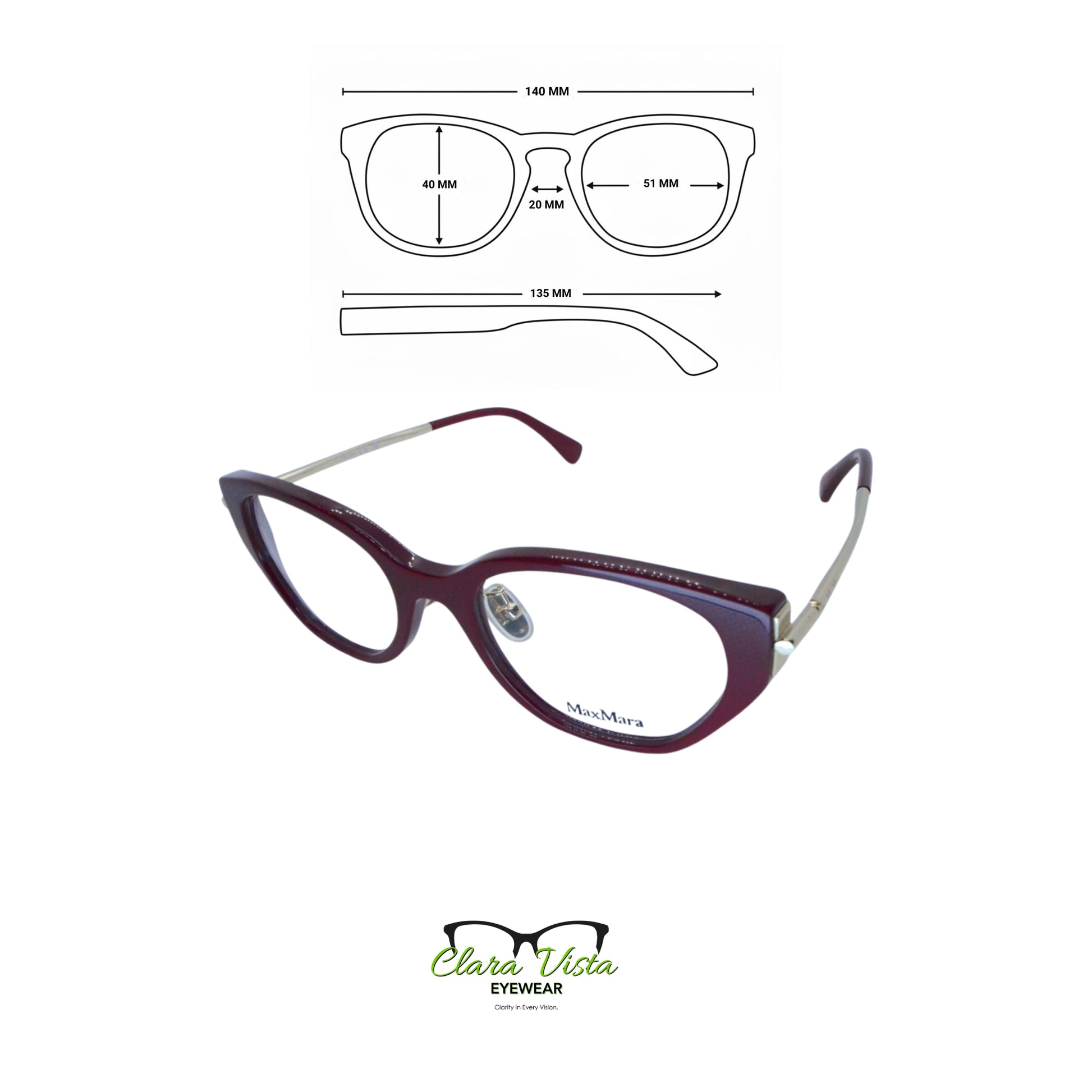 Elevate your look with this sophisticated MaxMara eyewear, blending timeless elegance with modern design. The bold burgundy acetate front creates a chic cat-eye silhouette, perfect for adding a touch of refinement to any style. Slim gold-toned metal temples enhance the frame’s luxurious appeal while ensuring lightweight comfort. Adjustable nose pads provide a secure and customized fit, making these glasses both fashionable and practical.